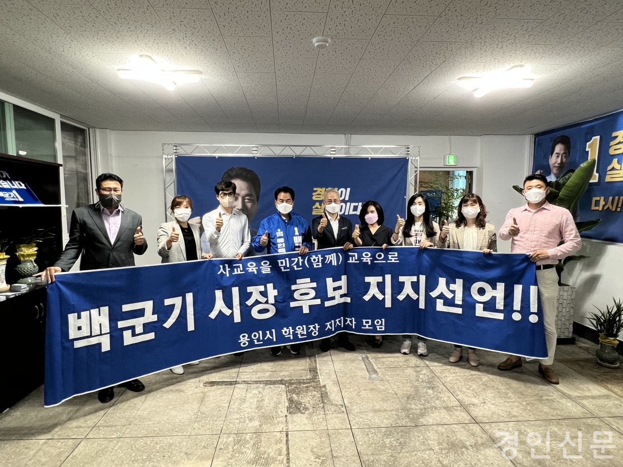 용인시 학원장 모임은 25일 기흥구 신갈오거리 백군기 더불어민주당 후보 선거사무소를 방문해 백군기 후보에 대한 적극적인 지지를 선언했다.