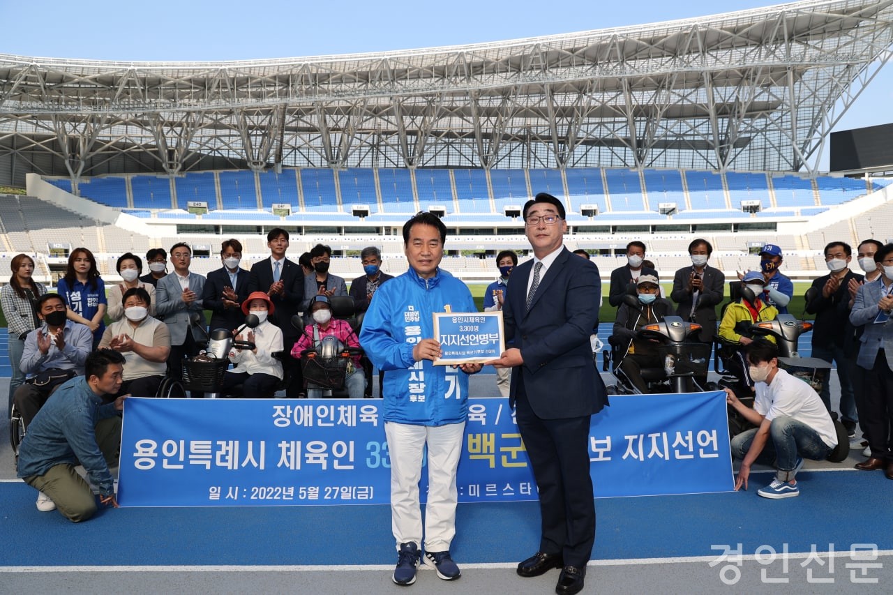 백군기 후보는 “용인특례시 체육인들의 지지와 성원에 무한한 책임감을 느낀다”며, “용인시 최초로 경기도종합체육대회를 유치한 경험과 실력으로 용인 체육발전에 더욱 매진하겠다”고 말했다.