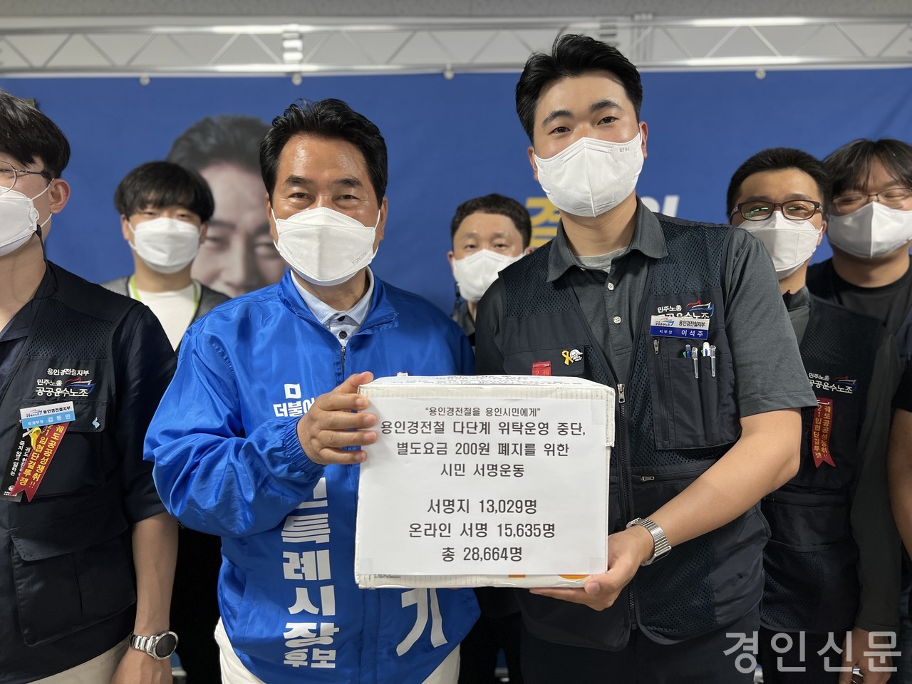 용인경전철노조는 간담회에서 용인경전철 다단계 운영구조 개선 및 시행사 또는 용인시 직영,별도요금 200원 폐지 등을 건의하였다.노조는 또 총 28,664명의 서명이 담긴 시민 서명지를 백 후보에 전달하였다.