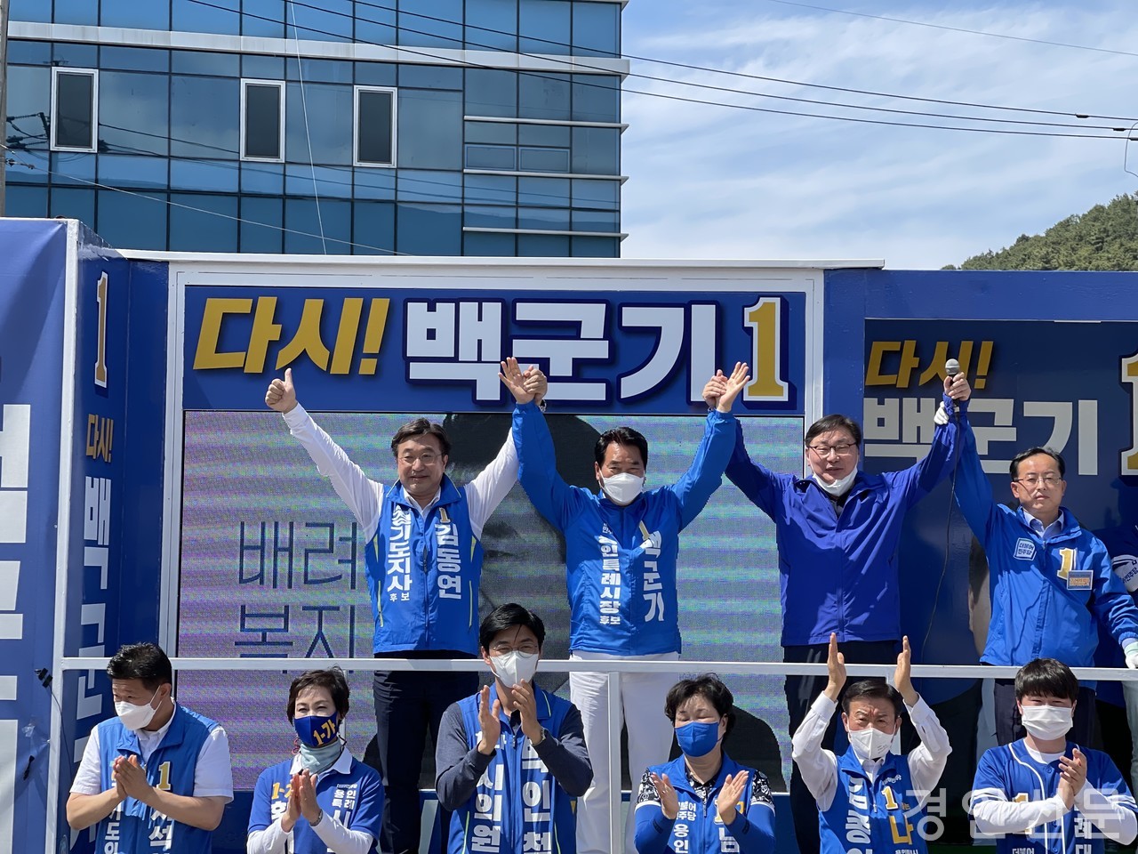 백군기 용인특례시장 후보는 “용인에 출마한 국민의힘 후보들을 보면 윤석열 대통령을 잘 안다. 만나서 담판 짓겠다는 식으로 시민들을 현혹하고 있다”며, “더불어민주당은 윤석열정부의 독주를 막고 민생과 서민.중산층을 반드시 챙기겠다”고 말했다.