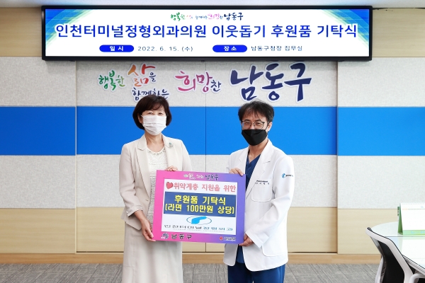 이강호 남동구청장은 “꾸준히 남동구 내 어려운 이웃들을 위해 기부를 해주시는 인천터미널정형외과에 감사드리며 후원품은 어려운 이웃들에게 큰 힘이 될 것”이라고 밝혔다.