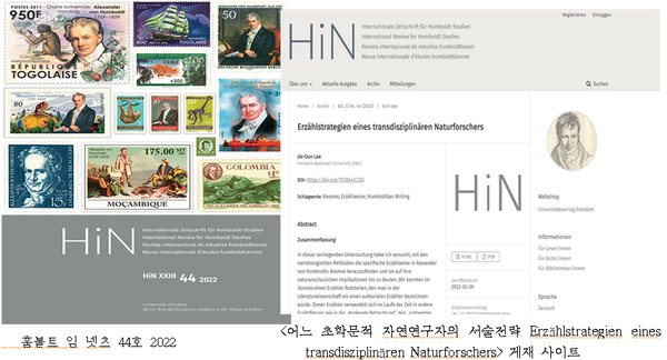 “어느 초학문적 자연연구자의 서술전략” Erzählstrategien eines transdisziplinären Naturforschers> 국제학술지 (HiN)의 최신호(Vol. 23, Nr. 44(2022))에 게재