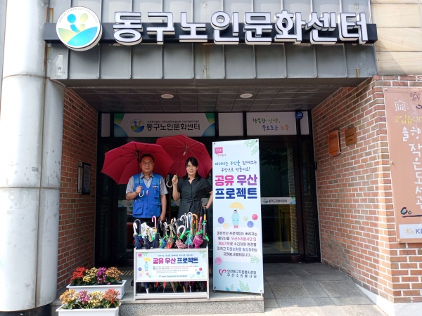 조민호 센터장은 “환경보호와 자원순환을 위해 만든 공유우산함 5호가 어르신들이 이용하시는 문화시설에 설치되어 뜻깊다”며 “문화센터를 이용하시는 어르신들의 비를 막아주는 행복 우산이 되기를 바란다”고 말했다.