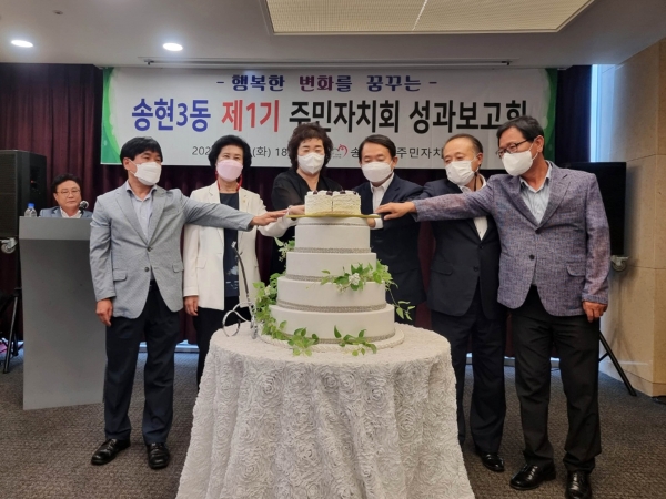 송현3동 주민자치회는 지난 2년간 황금고갯길 빛의 거리 조성, 어린이들을 위한 문화 프로그램 진행, 디지털 취약계층을 위한 키오스크 체험존 운영, 환경 취약지 태양광 포충기 설치 등 살기 좋은 마을 만들기를 위한 다양한 사업을 추진했다.