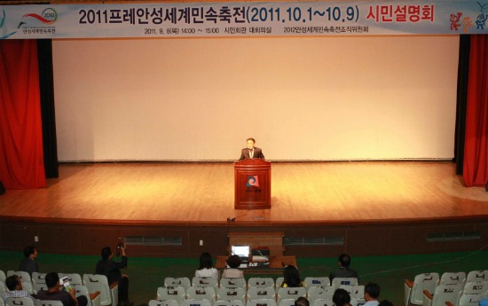 오는 10월1일 열리는 프레축전의 성공적인 개최를 위해 15개 읍·면·동 마을 대표자, 주민 등을 대상으로 실시된 설명회는 축전에 대한 기대효과, 기본 운영방향, 주요공연 및 체험프로그램을 자세하게 안내하고 적극적인 참여를 당부했다.
