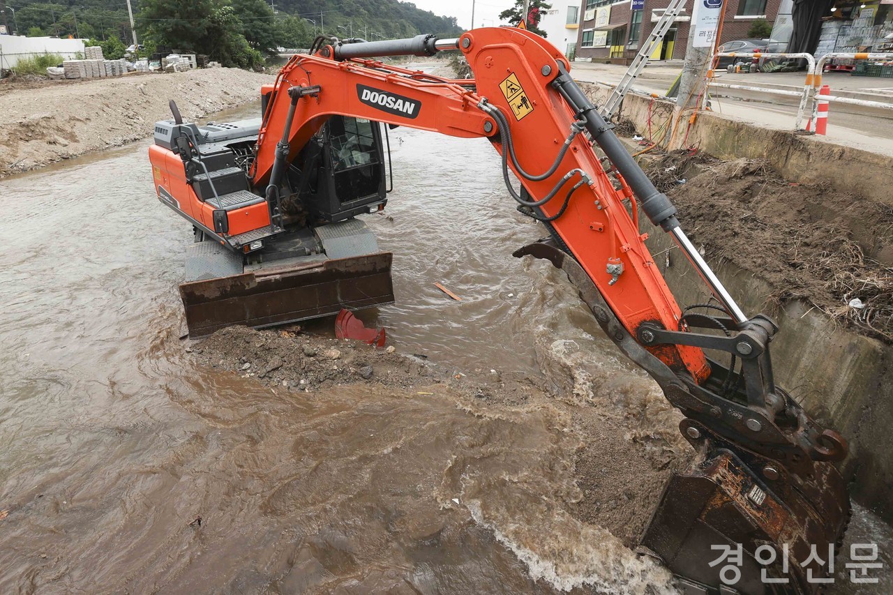 이상일 시장은 14일 아침부터 수지구 동천동 고기교 하상의 긴급준설 작업을 지시했다.
