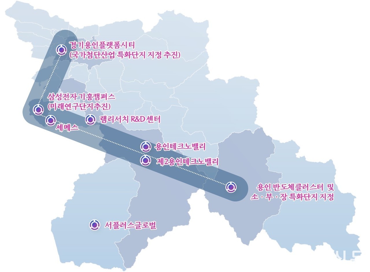 반도체 벨트는 기흥구 일원에 들어서는 용인 플랫폼시티 내 소·부·장 연구 및 제조시설부터 삼성전자 기흥캠퍼스 미래연구단지, 기흥미래첨단산업단지(세메스), 지곡일반산업단지(램리서치R&D센터), 통삼일반산업단지(서플러스글로벌), 제2용인테크노밸리, 용인 반도체클러스터, 원삼반도체협력단지까지 L자 모양으로 이어진다. 총면적은 642만㎡(약194만평)다.
