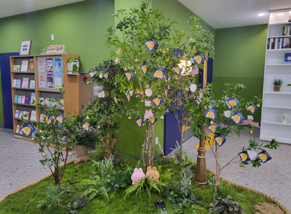 이벤트는 1층 로비 실내 정원을 활용해 개관 33주년 축하 메시지를 작성‧전시하고, 기념일 당일인 6일 자료실 도서 대출자와 열람실 이용자에게 기념품으로 종이 화분 키트를 증정했다.