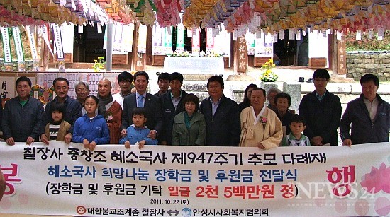 혜소국사가 평생 실천해 온 더불어 살고, 함께 나누는 자비의 삶을 되돌아 보기 위한 희망나눔 장학금 전달식과 시민과 함께하는 ‘희망나눔 음악회’가 500여명 시민이 참석한 가운데 성황리에 개최됐다.
