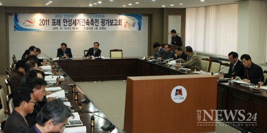 2012 안성세계민속축전 조직위원회(이하 ‘조직위’)는 황은성 시장과 이한경 부시장, 국장 등 간부공무원이 참석한 가운데 16일 프레축전 주요 결과 보고 및 발전방안에 대한 평가 보고회를 열고, 배재대 관광이벤트 연구소 정강환 교수의 용역 결과를 보고받았다.