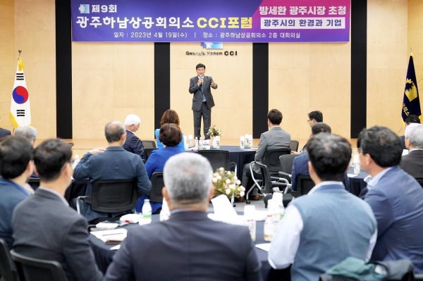 [ 경인신문= 박재호 기자]자타공인 환경분야 전문가 방세환 광주시장이 지난 19일 광주하남상공회의소가 개최한 ‘제9회 CCI(Chamber of commerce & Industry) 포럼’에서 기업인들을 대상으로 강연에 나섰다.