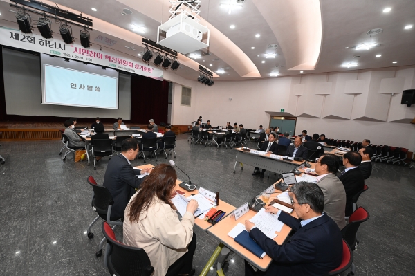 21일 하남시에 따르면 지난 20일 시청 본관 대회의실에서 이현재 시장을 비롯한 간부 공무원과 서춘성 시민참여 혁신위원회 수석부위원장, 분과별 위원 등 40여명이 참석한 가운데 ‘제2회 하남시 시민참여 혁신위원회 정기회의’를 개최했다.