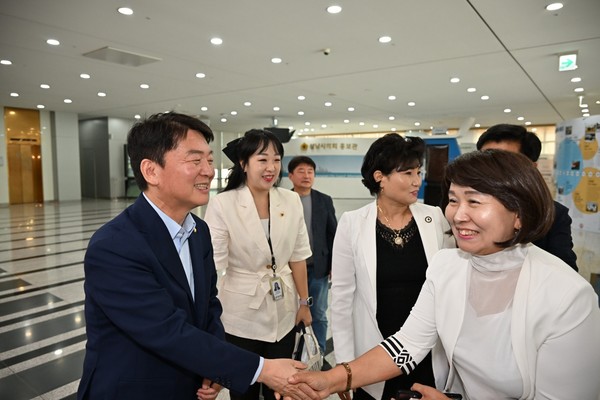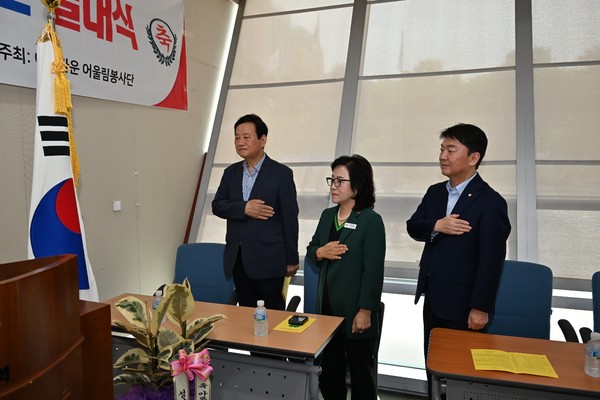 안 의원은 축사에서 "따뜻한 마음을 가지신 지역분들이 모여 '아름다운 어울림봉사단' 발대식을 개최를 진심으로 축하드린다"며 "제가 의대생 시절 카톨릭 학생회에서 의료봉사를하며 평생을 함께할 아내를 만났고, 무료로 배포했던 V3가 오늘날 안랩의 시초가 되었다"며 "오늘 발대식을 가진(민영미 단장) 봉사단 여러분들의 선한 영향력도 앞으로 어떤 놀라운 결과를 낳을지 기대된다"며 "아름답고 따뜻하고 행복한 성남시가 될수있도록 저 또한 봉사의 마음으로 열심히 활동 하겠다"고 말했다.
