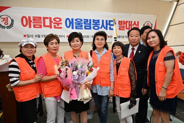 [경인신문=윤영우 기자]성남시 지역의 온기를 불어넣을 아름다운 어울림 봉사단 발대식이 5일 오전 성남시의회 1층 세미나 실에서 김영란(부단장) 사회로 국민의례, 내빈소개, 결의문낭독, 위촉 및 임명장수여, 환영사, 격려사, 축사, 기념촬영 순으로 진행 되었다.
