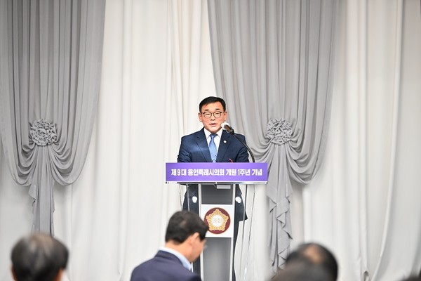 이상일 용인특례시장은 축사에서 “윤 의장과 의원들이 지혜를 주고, 또 여러 가지 힘을 보태주는 덕분에 지난 1년간 우리 집행부에서도 여러 가지 성과를 냈다고 생각한다.”라고 시의회에 감사 인사를 먼저 전한 뒤 “돌이켜보면 지난 1년간 시의회는 집행부와 함께 우리 용인시의 발전을 위해서 정말 의기투합을 많이 했다고 생각한다. 의원들이 좋은 아이디어와 정책 제안은 물론 조례 제정 과정이나 예산 책정, 추경 편성 과정에서 집행부가 미처 헤아리지 못한 많은 것들을 지적해주고 교정해준 덕분에 원만한 소통과 타협을 통해서 우리 시정을 잘 운영했다고 생각한다. 의원들이 시민에게 듣고 있는 여러 가지 목소리를 잘 반영해주었고 이런 기조는 앞으로도 잘 유지되리라 생각하고 시장으로서 더 시민을 위해 노력하겠다.”라는 말을 전했다.