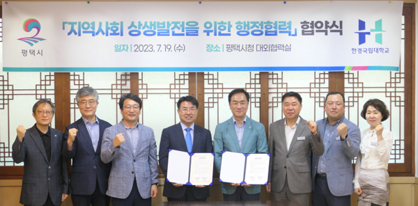 [ 경인신문= 박우열 기자]한경국립대학교(총장 이원희)는 7월 19일 평택시(시장 정장선)와 지역사회 기여 및 상생 발전을 위한 업무협약을 체결했다.