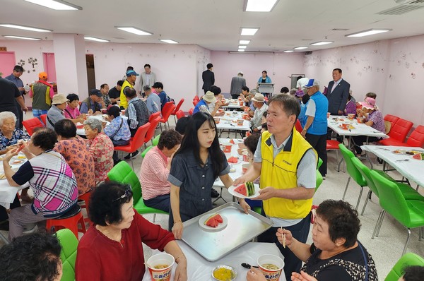 [ 경인신문= 송정민 기자] 맑고 향기로운 마을공동체 연화마을(회장 이재용)이 26일 경기도 장애인복지회 안성지회 에서 회원들의 건강한 여름나기를 위한 무료급식을 펼쳤다.