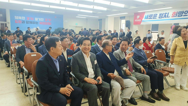 계속해서 송 위원장은 “공당으로서 문제해결을 위한 책임과 의무를 져버린 민주당을 이번 내년 총선에서 반드시 심판하고, 실질적 정권 교체를 완성하자”며 “이를 위해 ▲소통하고 ▲겸손하며 ▲책임지는 국민의힘 경기도당으로 이끌어 나가겠다”고 약속했다.