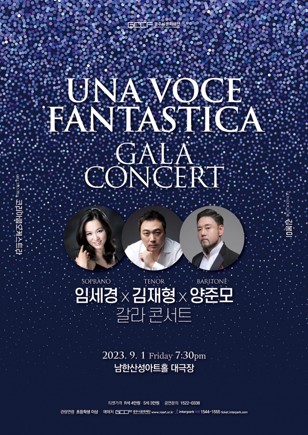 [ 경인신문= 김민석 기자] (재)광주시문화재단은 가을의 시작을 알리는 9월 남한산성아트홀에서 세계를 무대로 활동하고 있는 임세경, 김재형, 양준모 3인의 성악가와 함께 ‘Una voce Fantastica(우나 보체 판타스티카)–임세경x김재형x양준모 갈라콘서트’를 선보인다.