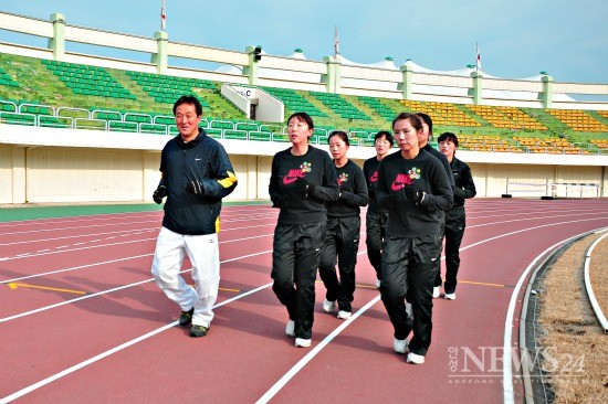 종합운동장의 정적을 깨우는 지 감독의 고함소리와 그녀들의 구령소리가 차디찬 겨울바람을 가르며 다가와 나를 반기더니, 힘에 겨운 듯 턱까지 차오른 숨소리는 보는 이의 시선을 멈추게 하고 있다. 그녀들에게 따뜻한 안방은 꿈속에서나 있을법한 얘기인 듯싶다.