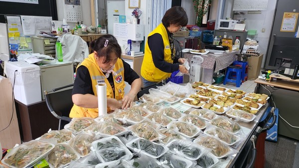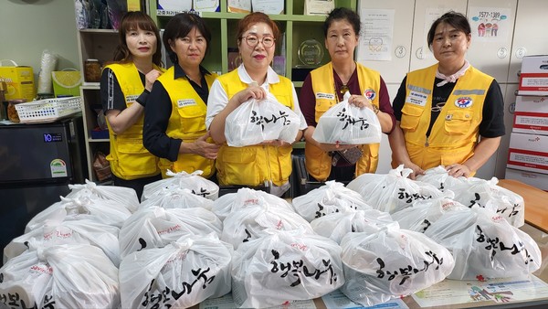 23일에는 정왕미미봉사회 회원들이 모시떡, 동태전, 어두부전, 호박전, 도토리묵, 잡채, 나박김치등등 을 맛깔스럽고 정성스럽게 직접 만들어서 결연세대 와 지역 취약계층세대 ,미얀마가구(난민)에 전달하며 풍요롭고 행복한 추석명절 보내시라고 전달 하고