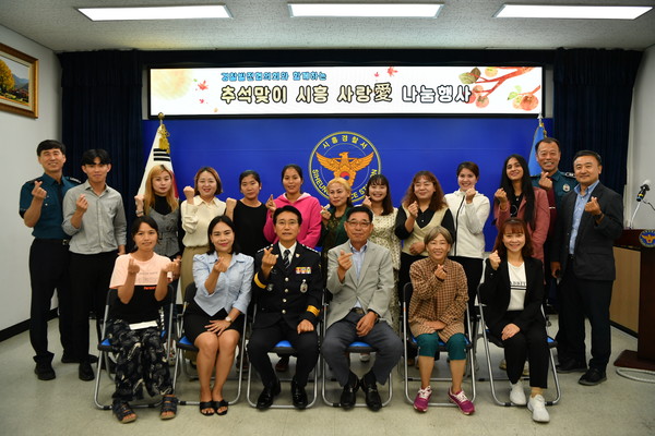 김신조 서장은 “추석을 맞아 고향에 가지 못하고 낯선 타국생활을 하시는 다문화 가정여러분께 따뜻한 한국의 정을 나누고, 도움이 되기를 희망한다”고 인사말을 전했다.