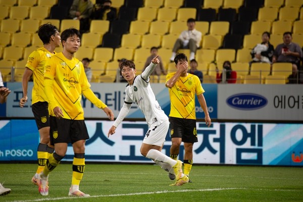 안산은 강한 뒷심으로 희망의 불씨를 살렸다. 윤주태가 후반 29분 정지용의 상대 수비수와 경합 과정에서 흘린 볼을 왼발 슈팅으로 만회골을 넣었다.
