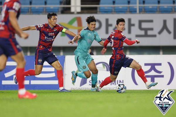 후반 13분 김경준을 빼고 이규빈을 투입하며 공격에 변화를 줬다. 이후 안산은 골과 함께 희망의 불씨를 다시 살렸다. 노경호가 후반 21분 오른발 중거리 슈팅을 시도했고, 김천 골키퍼 신송훈이 잡으려다 놓치며 골로 이어졌다.