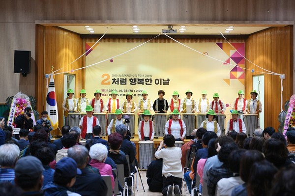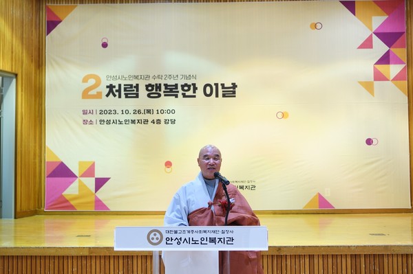 [ 경인신문= 정혜윤 기자] 대한불교조계종 사회복지재단이 수탁 운영하고 있는 안성시노인복지관이 수탁 2주년을 맞아 ‘2처럼 행복한 이날’ 이라는 주제로 지난 2년을 돌이켜 보고 다가올 3년을 계획하는 기념식을 개최했다.