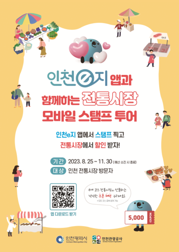 전통시장 스탬프투어는 인천e지 앱을 설치하고 주요 관광지와 전통시장으로 구성된 투어코스를 방문하면 GPS 인증을 통해 모바일 쿠폰을 획득하는 방식으로, 쿠폰은 부평종합시장, 구월⋅모래내시장, 신포국제시장, 용현시장 등 11개 전통시장 내 가맹점 138곳에서 현금과 같이 사용할 수 있어 많은 시민과 관광객의 발길을 끌었다.