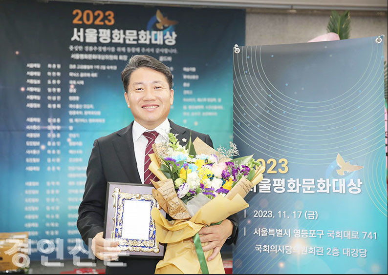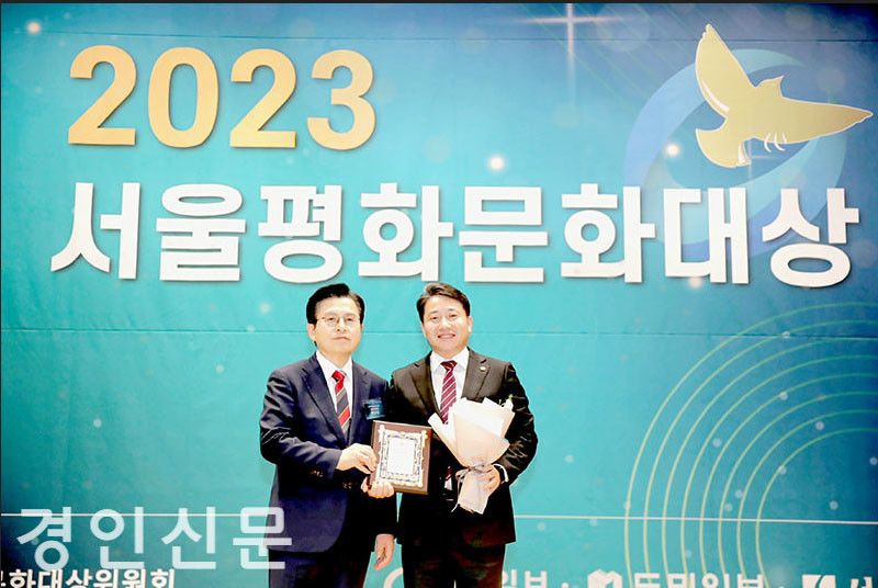 [ 경인신문= 임현택 기자] 화성시의회 임채덕 의원(국민의힘, 진안·병점1·2동)이 17일, 제44대 국무총리를 역임한 황교안 대회장이 이끄는 서울평화문화대상위원회가 주최하는 ‘2023 서울평화문화대상’ 시상식에서 ‘도시개발 자치의정대상’ 수상의 영예를 안았다.