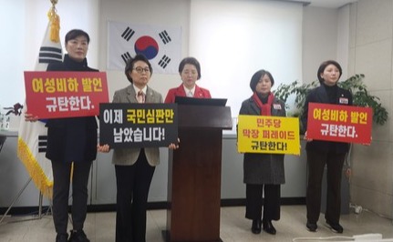 그동안 민주당 혁신위원장은 노인을 폄하했고 민주당은 청년을 보는 편협하고 비뚤어진 시선이 고스란히 담긴 현수막을 내걸더니 이번에는 여성 비하 망언까지 막말 퍼레이드가 끊이지 않고 있다.