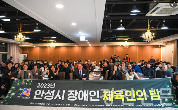 [ 경인신문= 정혜윤 기자] 안성시장애인체육회(회장 안성시장 김보라, 상임부회장 전정식)는 지난 6일 오후 AW웨딩컨벤션홀 3층 연회장에서 장애인 및 가족들과 각 시설장, 사회단체장, 체육인 등 약 150여명이 참석한 가운데 ‘2023 장애인 체육인의 밤’ 행사를 개최했다.
