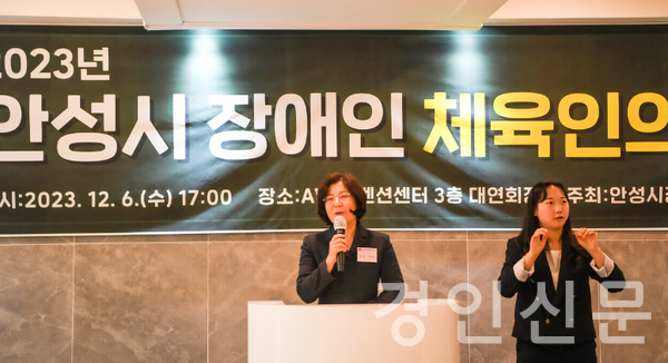 김보라 회장은 환영사를 통해 “지난 한 해 장애인체육인 여러분들의 열정과 노고에 안성시의 위상이 더욱 높아진 것 같다”면서, “내년에도 더욱 분발해 멋진 모습을 보여주길 기대하며 안성시에서도 여러분들을 응원할 것”이라고 말했다.