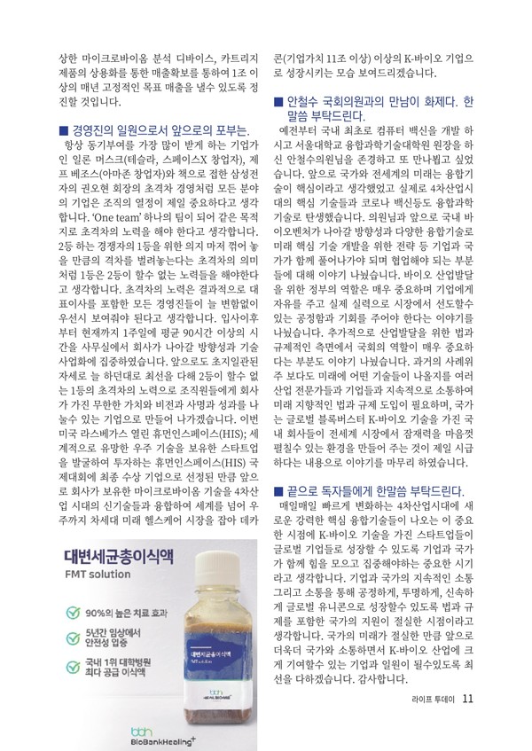 "대한민국 K-바이오의 기술과 가능성을 전 세계에 알리다" 경인신문 기자 insky8115@naver.com 다른기사 보기 저작권자 © 경인신문 무단전재 및 재배포 금지 당신만 안 본 뉴스 “안성시는 도심 정책 전면 재검토하라!” 안성시 전국 최초 식판 세척 사업, 왜 ‘최악의 실패 사례’가 됐나? (사)불교정중연등종 연등사, 장애인복지관에 825만원 상당 생필품 기부 “안성시는 도심 정책 전면 재검토하라!” 댓글삭제 삭제한 댓글은 다시 복구할 수 없습니다. 그래도 삭제하시겠습니까? 비밀번호 닫기 기사 댓글 0 댓글 접기 로그인 후 이용 가능합니다. 댓글 내용입력 비회원 로그인 이름 비밀번호 댓글 내용입력 댓글쓰기 계정을 선택하시면 로그인·계정인증을 통해 댓글을 남기실 수 있습니다. 회원 로그인 비회원 글쓰기 이름 비밀번호 자동등록방지 로그인 옵션 창닫기 주요기사 [기자수첩]절차 흠결이 만든 ‘불신의 복직’, 청소년 기관의 신뢰는 어디서부터 복원해야 하나 (사)불교정중연등종 연등사, 장애인복지관에 825만원 상당 생필품 기부 임태희 교육감,“한국어로 문화와 세계를 잇는 글로벌 교육환경 만들것” 경기도의회 정하용 의원, 신갈천 산책로 진입경사로 설치 이끌어… 주민 보행편의 대폭 개선 전의이씨 후손들로부터 기증받은 이덕수 초상 유복본·관복본 보존 처리 후 ‘중국에서 그려 온 초상使行肖像’ 무장애 특별기획전에서 최초 공개 상상을 현실로 만드는 특별한 공예 여정, 경기상상캠퍼스 상상실험실 교육 12월까지 연장