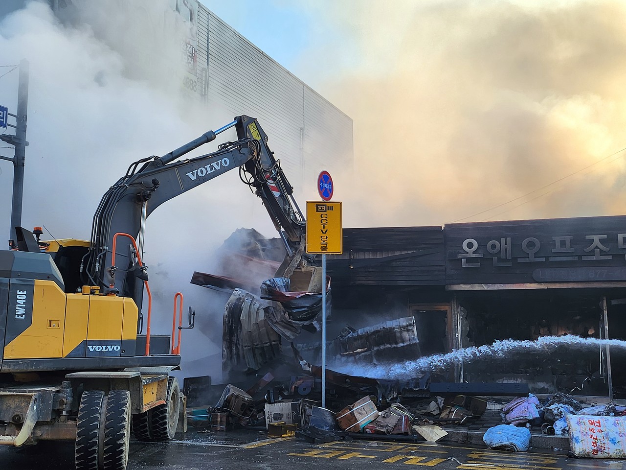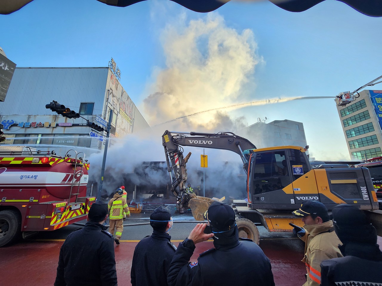 소방 당국은 이웃 대형건물로 불길이 더 이상 번지지 못하도록 굴삭기 등을 추가로 투입해 진화 작업을 펼치고 있다.
