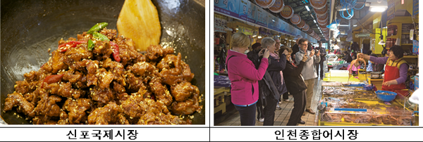 가족・연인・친구들과 즐겁게 시간을 보냈다면, 출출해진 배를 채우러 전통시장으로 떠나보자. 모든 전통시장에서 풍성한 인심을 맛볼 수 있지만, 그 중에서도 중구 신포국제시장과 인천종합어시장, 미추홀구 신기시장, 남동구 모래내시장, 서구 가좌시장, 부평구 부평종합시장은 지역별 특별한 먹거리로 유명하다.