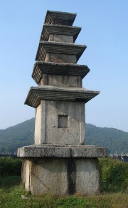 이곳에 있는 오층석탑은 그 높이가 6m로 여러 장의 크고 넓적한 돌로 지대석을 만들고 그 위에 단층 기단을 두고 위에 5층 탑신을 올렸다.