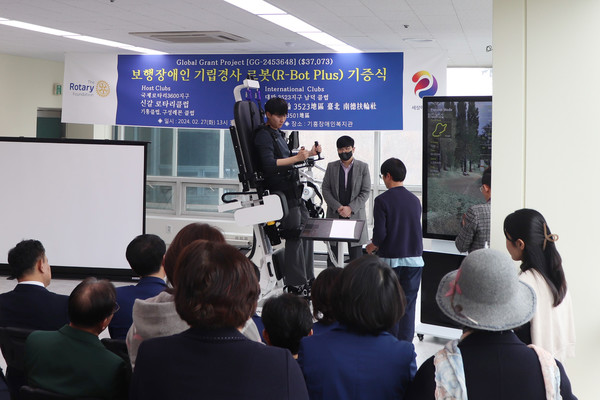 ‘R-BoT plus’를 기증한 신갈로타리클럽 이동채 회장은 “R.고든 R.매키넬리 국제로타리 회장님의 ‘세상에 희망을’ 이라는 표어처럼 거동이 불편한 장애인에게 새로운 희망을 꿈꿀 수 있는 기회를 선물할 수 있어 기쁘다”며, “앞으로도 국제로타리3600지구 신갈로타리클럽은 장애인의 삶의 질 향상을 위해 늘 함께 하겠다”고 말했다.