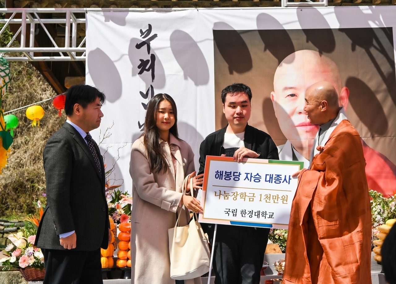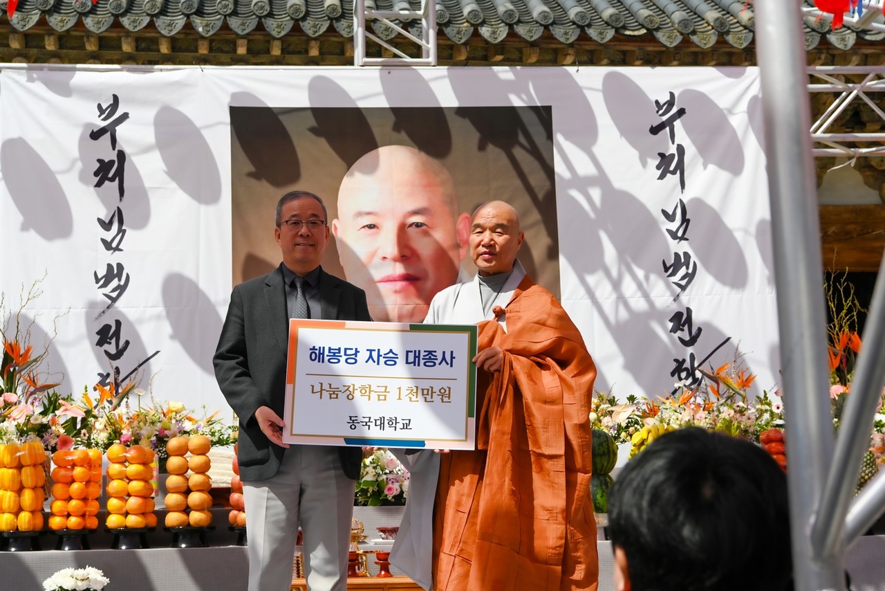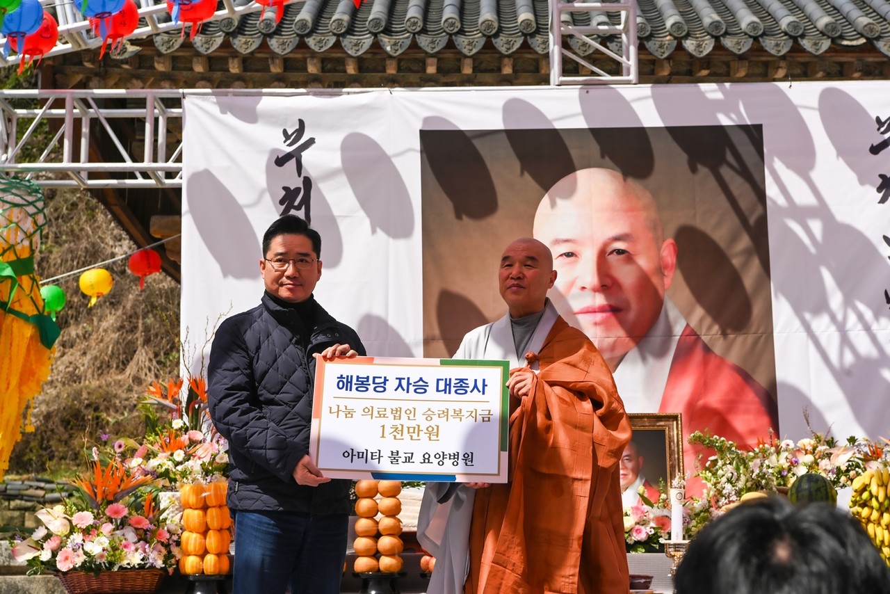 특히 이 자리에서 지강 스님은 동국대와 국립 한경대에 장학금으로 각각 1천만 원을 기탁 했으며, 아미타불교요양병원에 승려복지금 1천만 원과 안성시에 쌀10㎏ 800포를 기부하며 평소 해온 것 처럼 나눔을 실천했다.