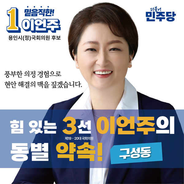 이언주 후보는 “구성동 주민들의 삶의 질 향상을 위해 전념할 것”이라며 “모든 주민이 편리하고 즐거운 생활을 영위할 수 있는 환경을 조성하는 것을 목표로 하겠다”고 강조했다.