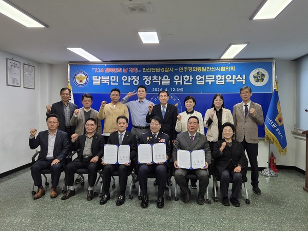 [ 경인신문= 김현수 기자] 민주평화통일자문회의 안산시협의회(이하 ‘민주평통 안산’, 협의회장 김기백)는 4월 12일 오전 11시 안산단원경찰서 1회의실에서 「북한이탈주민의 안정적인 정착을 위한 업무협약」을 체결했다.