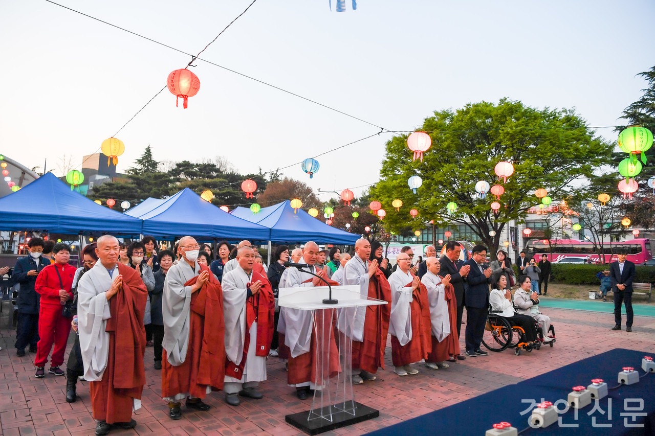 지강 회장 스님은 봉축사를 통해 “부처님 오신 날을 앞두고 많은 시민들과 함께 뜻깊은 행사를 열게 되어 행복하다”면서, “오늘 봉축 점등 행사를 통해 시민 모두가 지친 마음을 위로받고 마음의 평화와 행복한 세상이 되길 발원한다”고 전했다.