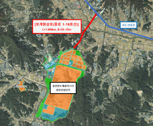 시는 SK하이닉스가 122조원을 투자해 반도체 생산라인(Fab) 4기를 건설하는 용인반도체클러스터 일반산업단지의 제1기 팹이 착공될 내년 3월에 맞춰 주 진입로인 보개원삼로를 현재 2차로에서 3차로로 우선 확장하는 공사를 추진하고 있다.