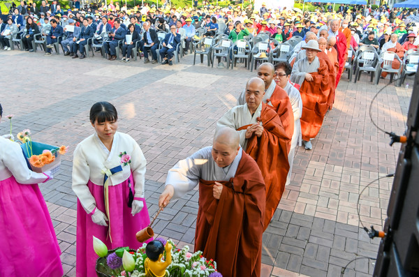 지강 회장 스님은 봉행사를 통해 “오늘은 너무나 기쁘고 고마운 날”이라며, “얼마 전 점등식에서 말씀드린 ‘어른을 공경합시다’라는 약속에 모두 공감해 주셨기 때문에 오늘 행사가 더욱 빛나는 것 같다”고 전했다.