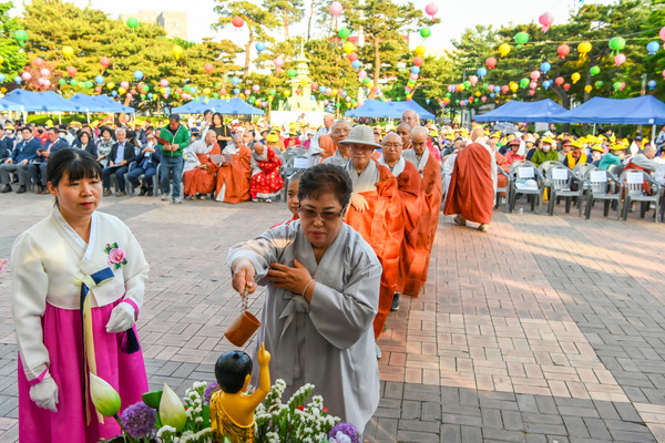 굴암사 회주 마가 스님은 법어를 통해 “여러분 마음속에 ‘미고사’(미안합니다. 고맙습니다. 사랑합니다)라는 이름의 절을 모시면서 살아보길 발원한다”면서 “부처님 오신 날을 맞아 내 마음에 내 가정에 연꽃을 피우는 최고의 삶을 살자”고 전했다.