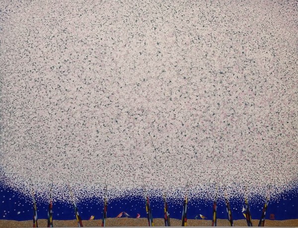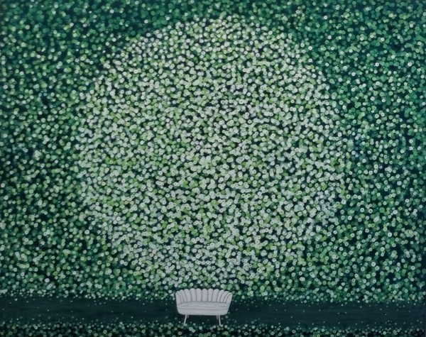 김 작가의 작품속에는 꽃잎,새,나무,의자 등이 등장한다. 꽃잎은 영혼의 정원이며, 새들은 웅크린 내면의 나를 깨우고 품어주는 영혼이며, 의자는 가장 아름다운 시절을 초대하는 동시에 달콤한 휴식같은 여유에 대한 간절한 그리움을 표현한다.
