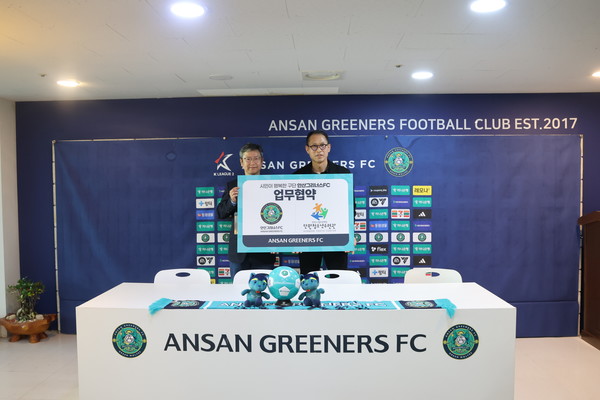 [ 경인신문= 김현수 기자] 안산그리너스FC(구단주 이민근)는 지난 5월 11일 (토) (재)안산시청소년재단 단원청소년수련관과 청소년 스포츠활동(축구) 활성화를 위한 지역 밀착 업무 협약을 체결했다.