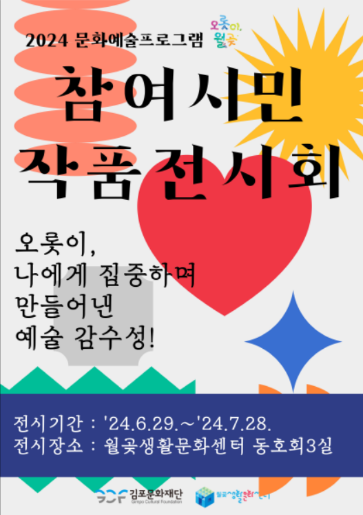이번 전시는 월곶생활문화센터 문화예술프로그램 ‘오롯이, 월곶’ 수강생들의 활동 성과를 지역사회에 공유함으로써 김포시민의 문화적 감수성을 높이고 예술적 소통을 증진하기 위해 마련됐다.