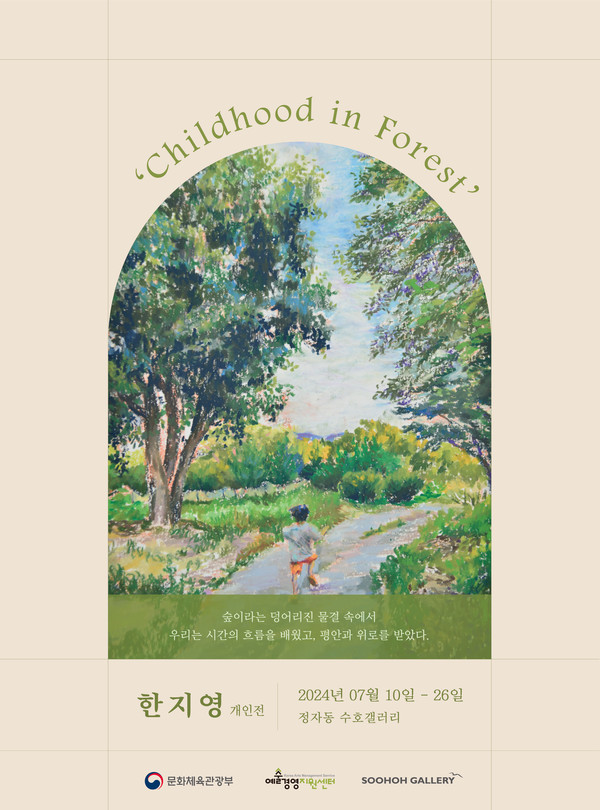 [경인신문=김중택 기자]자연이라는 소재를 통해 지친 현대인들에게 예술의 치유적 목적인 평안과 위로를 전달하는 한지영 작가의 개인전 <Childhood in Forest>는 2024년 07월 10(수)부터 2024 07월 26일(금)까지 경기도 성남시 분당구 정자동에 위치한 (네이버본사 맞은편) 수호갤러리에서 열린다. 특히 이번 전시는 2024년 제16회 수호아티스트 공모전에서 당선된 역량있는 작가들의 작품 세계를 선보이는 프로젝트의 일환으로 그 의미가 더욱 특별하다.
